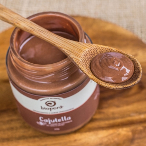 Quer conhecer o cacau de verdade? Então a Cajutella Bioporã é a escolha perfeita! Feita com amêndoas íntegras de cacau, castanha de caju naturalmente adocicada e mascavo orgânico da Chapada dos Veadeiros, essa delícia entrega cremosidade, textura suave e um sabor autêntico.