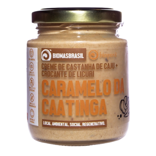 O Caramelo da Caatinga une duas pérolas da Caatinga: a castanha de caju e o licuri. Uma combinação cheia de sabor, história e impacto positivo! Ao consumir este produto, você apoia a preservação da Caatinga, valoriza o extrativismo comunitário e fortalece uma dinâmica regenerativa entre pessoas, bioma e alimento.
