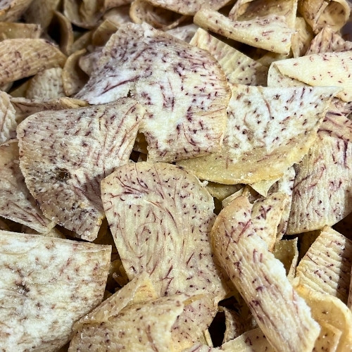 Nossos inhame chips são crocantes e deliciosos, uma opção saudável e cheia de sabor, perfeita para quem busca um lanche leve e nutritivo.
