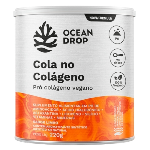 O pró-colágeno em pó da Ocean Drop contém uma combinação de ingredientes que promovem benefícios para a saúde e aparência da pele. Entre esses ingredientes, destacam-se a glicina, treonina, lisina, magnésio, arginina, ácido hialurônico, Nutricolin, vitamina C, vitamina E, licopeno, betacaroteno, zinco, astaxantina, cobre, biotina e potássio.