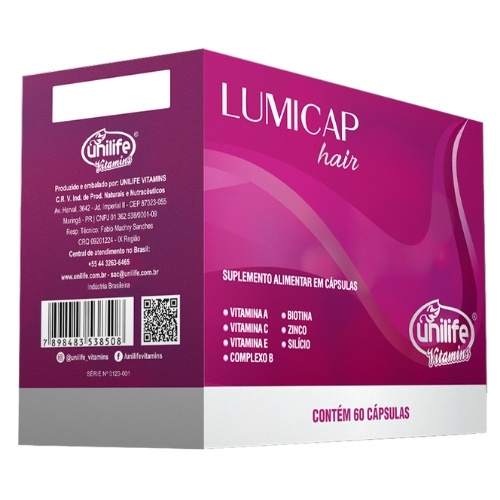 O Lumicap Hair Unilife Vitamins é um suplemento multivitamínico desenvolvido especialmente para a saúde dos cabelos. Formulado com vitaminas e minerais, incluindo biotina, silício e zinco, este suplemento é ideal para fortalecer e promover o crescimento capilar, contribuindo para a saúde e a vitalidade dos fios.