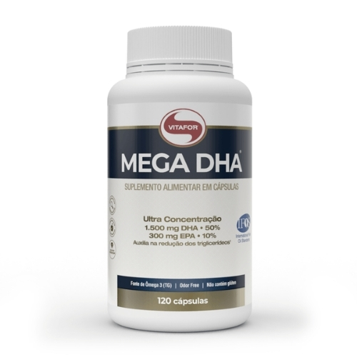 MEGA DHA® é um suplemento alimentar premium à base de óleo de peixe com ultra concentração de DHA, ideal para suporte cognitivo e neurológico em todas as fases da vida. Apresentado na forma TG (triglicerídeos), oferece excelente absorção e biodisponibilidade, com certificação internacional IFOS™ que atesta sua pureza, frescor e isenção de metais pesados.