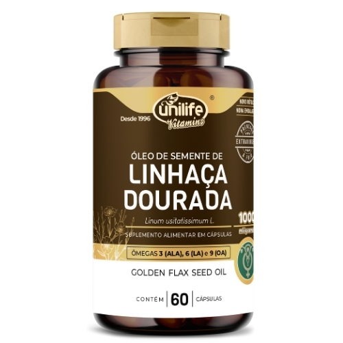 O Óleo de Semente de Linhaça Dourada Unilife é um suplemento natural de alta qualidade, extraído a frio para preservar seus nutrientes essenciais. Rico em ácidos graxos essenciais, como ômega 3 (ALA), ômega 6 (LA) e ômega 9 (OA), é um aliado importante para a saúde cardiovascular, equilíbrio hormonal e bem-estar da pele.