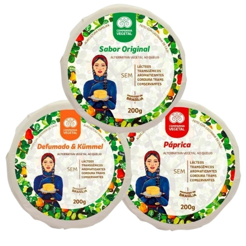 • Defumado & Kümmel: Água, polvilho de mandioca, castanha de caju, óleo de coco palmiste, fécula de batata, extrato de leveduras, extrato de algas marinhas, ácido cítrico, sal marinho, kümmel e especiarias.