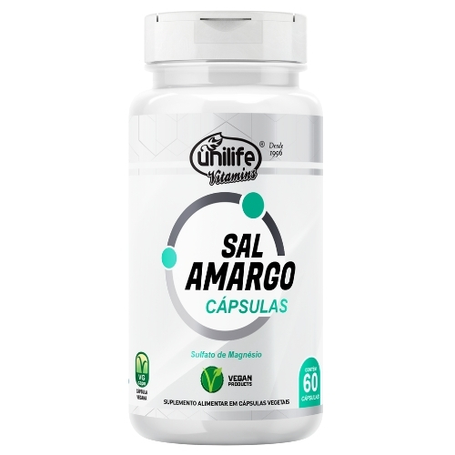 O Sal Amargo da Unilife é um suplemento vegano formulado com sulfato de magnésio heptaidratado e óxido de magnésio oferecendo 850 mg por cápsula. Além de contribuir para a formação de ossos e dentes, o magnésio auxilia no funcionamento muscular, no equilíbrio neuromuscular e é tradicionalmente utilizado para auxiliar no bom funcionamento intestinal. Prático e livre de lactose e glúten, é uma alternativa ideal para quem busca regularidade digestiva de forma natural.