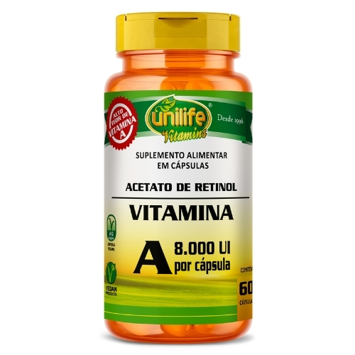 A Vitamina A Unilife Vitamins é um suplemento vegano desenvolvido com acetato de retinol, forma biodisponível dessa vitamina essencial. Reconhecida por sua atuação na saúde ocular, a vitamina A também é fundamental para a integridade da pele e das mucosas, o bom funcionamento do sistema imunológico e o metabolismo do ferro.